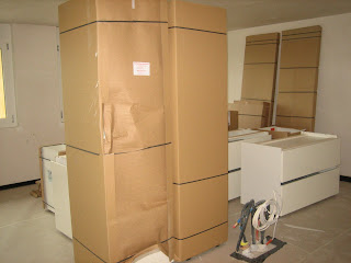 Well, they managed to get the appliances up the stairs, but my beloved food-center was too big they claimed. So I called the construction manager and he told them to put it in the garage.